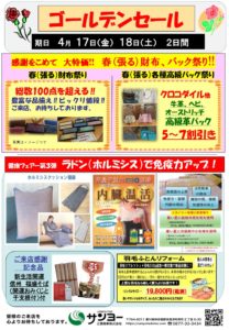 いつもお世話になっております。4月17日(金)、18日(土)展示会を開催します。 皆様のご来店お待ちしております。