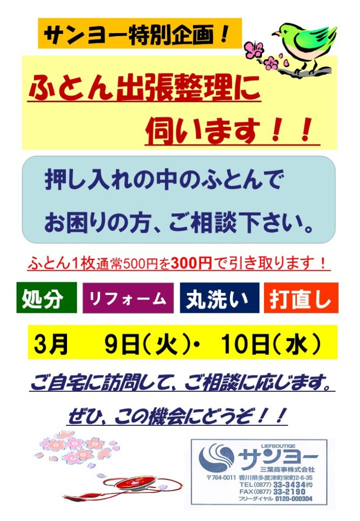 ふとん出張整理に伺います。