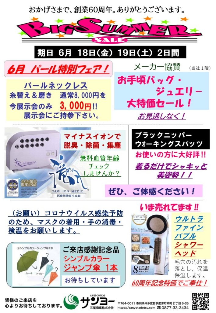 6月18日(金)・19日(土)ビッグサマーセール展を開催します。