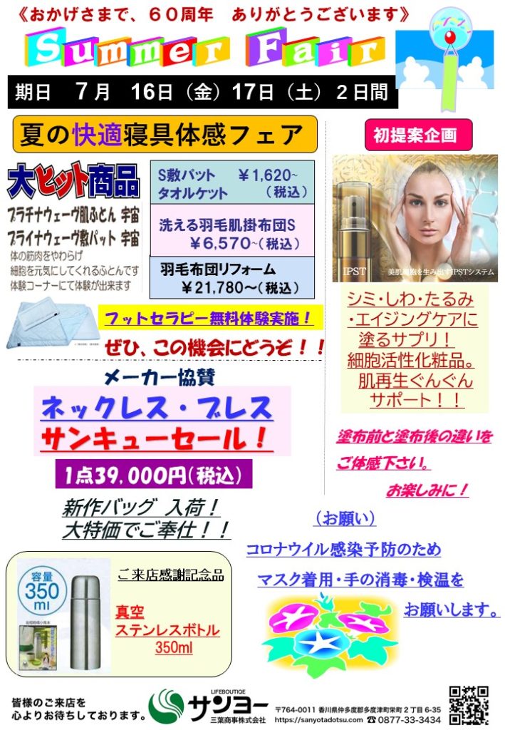 7月16日(金)17日(土)サマーフェアー展を開催します。
