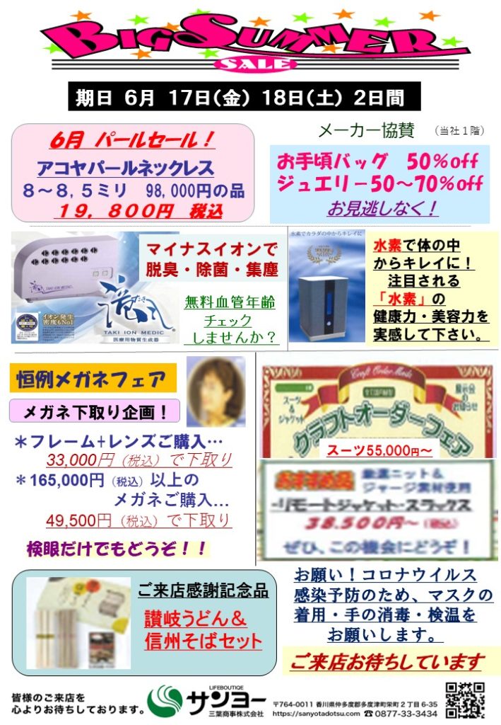 2022年6月1日 / 最終更新日 : 2022年5月19日 kamioka お知らせ 6月展示会のお知らせ 6月17日(金)・18日(土) ビッグサマーセール展を開催します。 ぜひ、ご来店下さい。お待ちしております。