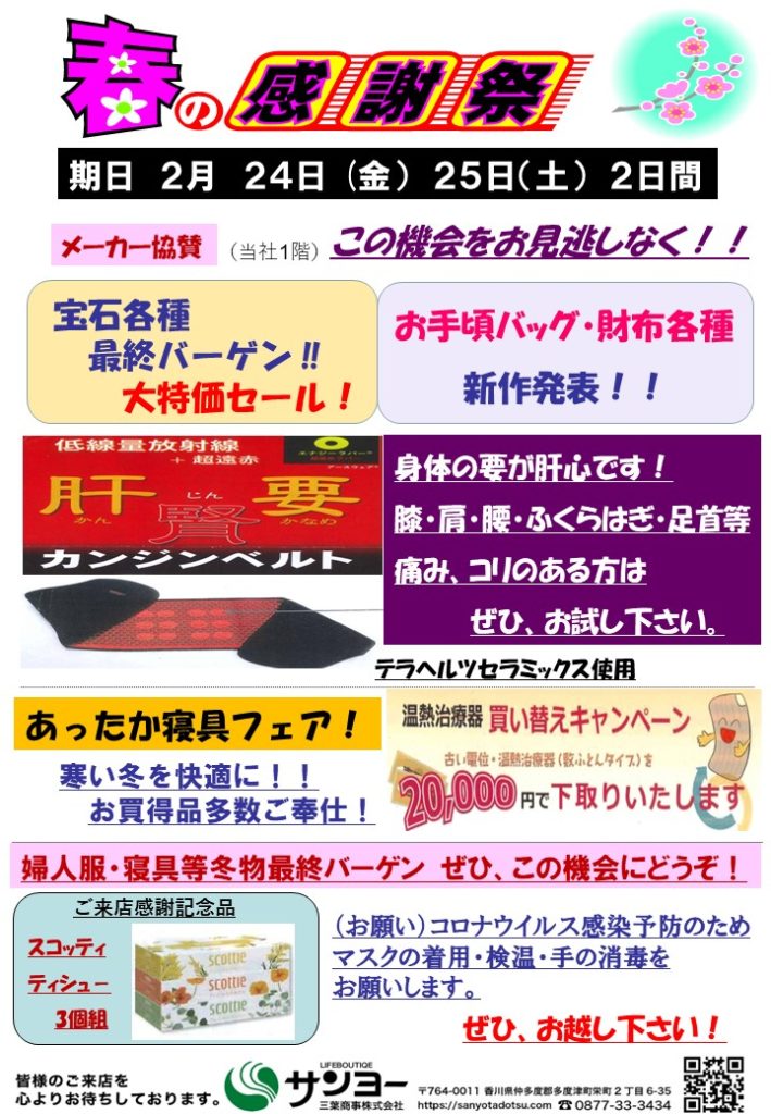 2023年1月15日 / 最終更新日 : 2023年1月11日 kamioka お知らせ 2月春の感謝祭のお知らせ 2月24日(金)・25日(土)展示会を開催します。ぜひ、ご来店下さい。お待ちしております。