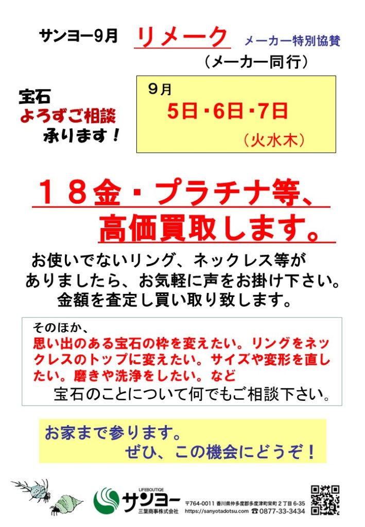 宝石リメイク・買取 同行企画のお知らせ