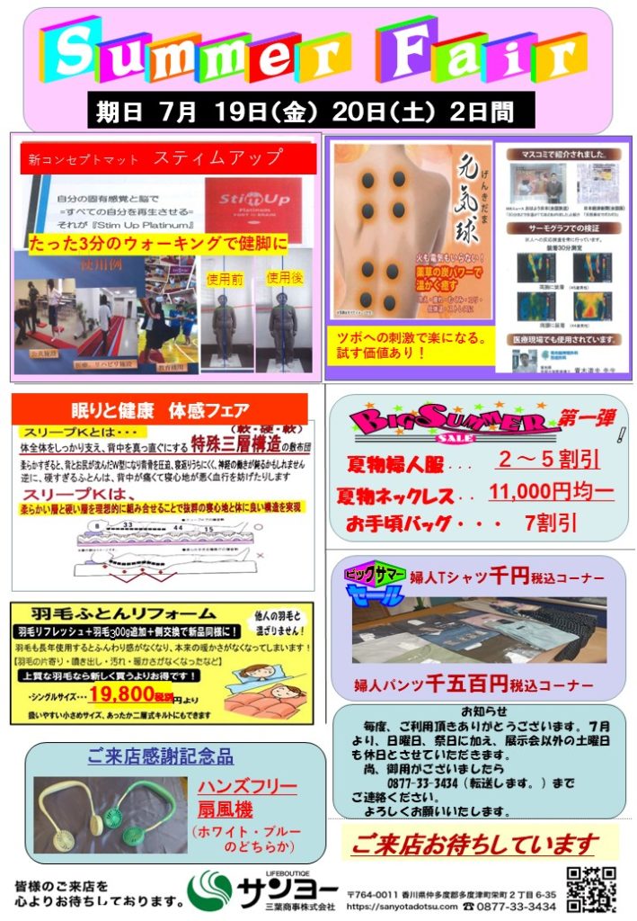 2024年6月16日 / 最終更新日 : 2024年6月12日 kamioka お知らせ 7月展示会のご案内 7月19日(金)・20日(土)サマーフェアー展を開催します。 皆様のお越しをお待ちしております。よろしくお願いいたします。