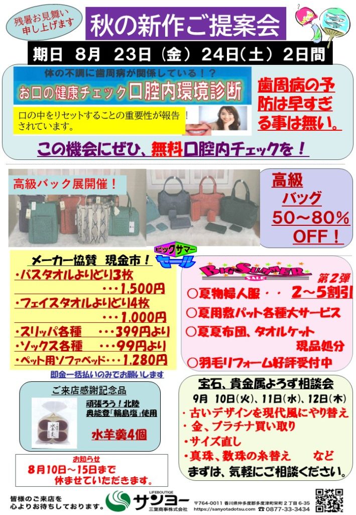 いつもお世話になっております。8月23日(金)・24日(土)展示会を開催します。