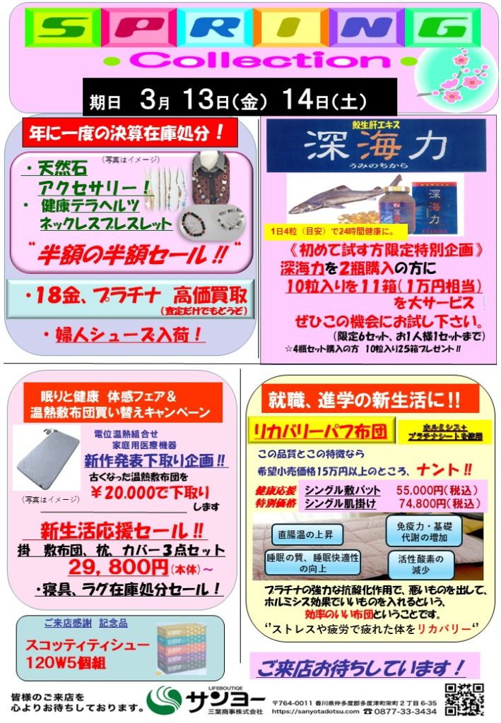 2026年2月22日 / 最終更新日 : 2026年2月18日 kamioka お知らせ 3月スプリングコレクション展のお知らせ いつもお世話になっております。3月13日(金)・14日(土)展示会を開催します。 皆様のご来店お待ちしております。よろしくお願いいたします。