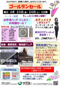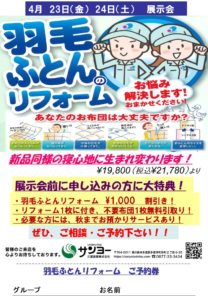 4月23日(金)・24日(土)展示会を開催します。 ご来店お待ちしております。