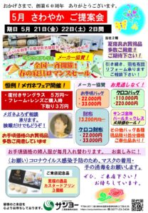 5月21日(金)22日(土)さわやかご提案会を開催します。 ぜひ、おいで下さい。