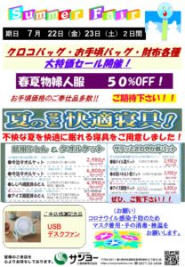 7月22日(金)・23日(土)サマーフェアー展を開催します。 ぜひ、ご来店下さい。お待ちしています。