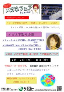 7月7日(木)・8日(金)メガネの先生とお家までお伺いします。 お気軽にご連絡ください。