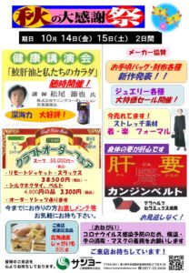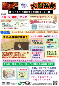 11月18日(金)・19日(土)大創業祭を開催します。 ぜひ、ご来店下さい。お待ちしております。