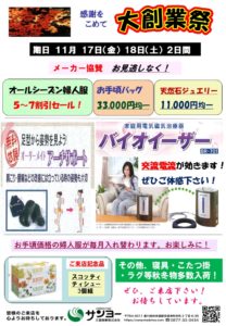 いつもお世話になり、ありがとうございます。11月17日(金)・18日(土)大創業祭展を開催します。 皆様、ぜひご来店下さい。お待ちしております。