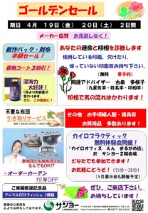 4月19日(金)・20日(土)展示会を開催します。ぜひ、ご来店下さい。お待ちしております。